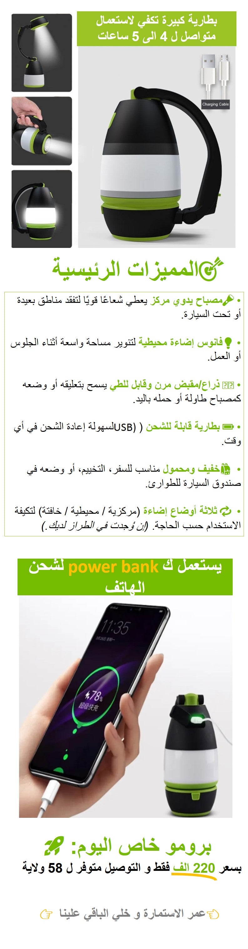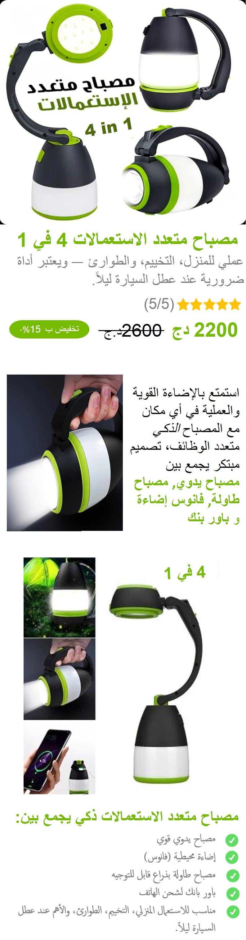 مصباح متعدد الاستعمالات 4 في 1